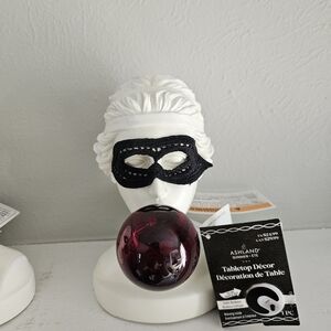 New with tags- Set of 2 sold out Michaels Ashland Gothic Bordeaux collection tabletop busts featuring one man bust with bubblegum light up feature and black mask- measures 5.25 in x 6 in x 7.5 in and one woman bust with bubblegum light up feature and black mask- measures 4.75 in x 6.12 in x 7.5 in. Requires 2 AAA batteries for each one, not included.