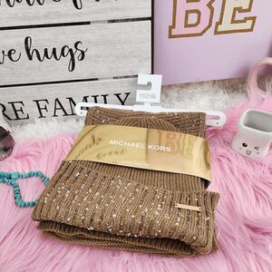 NWT {Michel Kors} Scarf and Hat Set Brown and Sequin NWT