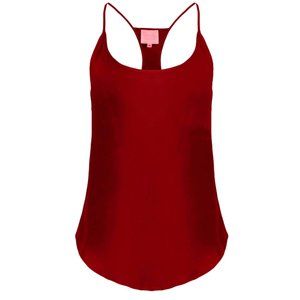Classic scoop neck tank in 100% Silk Charmeuse with racer back and thin straps. Straight cut with soft flare at the waist and scooped sides. Fits true to size.