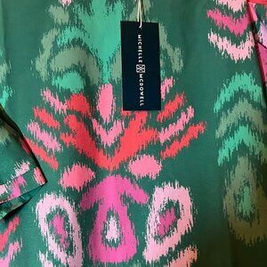 NWT Michelle McDowell Women's Green Abstract Ikat Print Puff Sleeve Blouse Mediu
