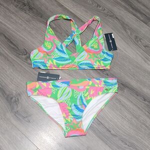 NWT Michelle McDowell Bright Chloe River Iris Teal Bikini, never worn and perfect quality condition. Both top and bottom are large.