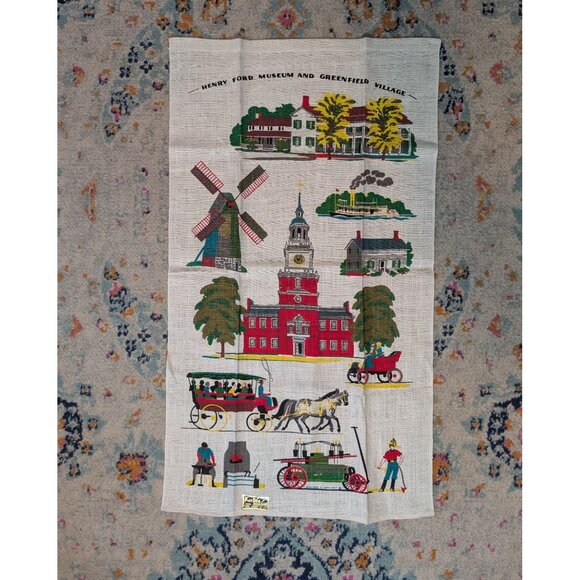 NWT Mid Century KayDee Linen Tea Towel - Henry Ford Museum & Greenfield Village