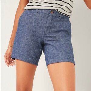 Your every day short for a casual and relax outfit. Sit just below waist, relax through hip and thigh- 7 “ inseam, button closure with built in belt loops, zip fly. Diagonal on seam pockets in front& decorative faux pocket in back.