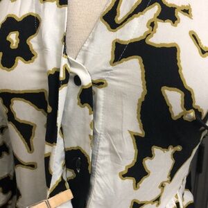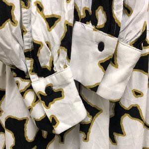 This midi dress features a striking Black, White and Olive design, perfect for making a statement. The flowing silhouette and notched collar add a touch of sophistication, making it ideal for many different occasions.