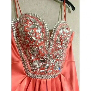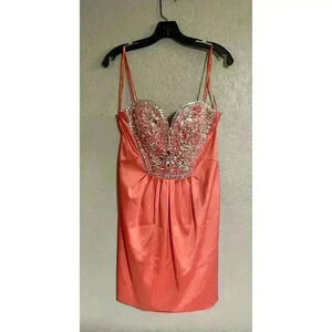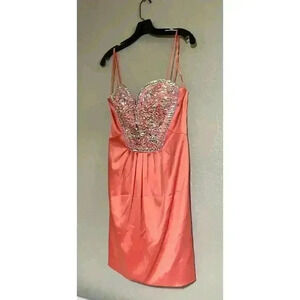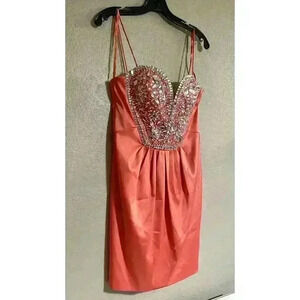 NWT Mignon Pink Coral Jeweled Bodice Cocktail Party Holiday Elegant Dress Size 8