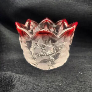 NWT Mikasa Germany 3D Embossed Glass Winter Scene Dish Clear Red Accents 4" Wide