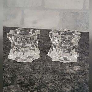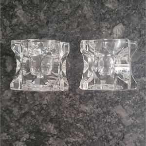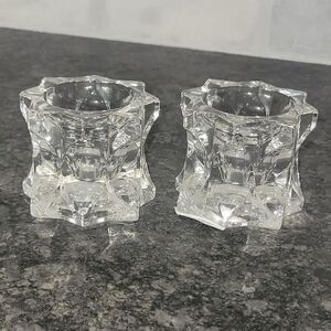 NWT Mikasa Sparkling Star Crystal Candle Holders Taper Tea Light Votive Set of 2