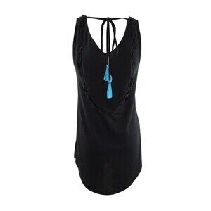 NWT Miken Junior's Tie Back Tassel Shoulder V Neck Swim Cover-Up size S Black