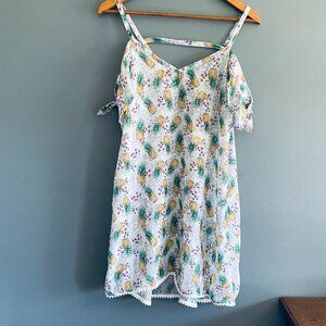 Miken Swim Pineapple Flutter Cold Shoulder Swim Cover Up Dress Womens Size M Sheer