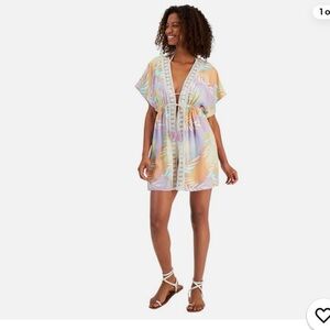 NWT Miken Women's Printed Tie-Waist Crochet-Trim Cover Up size XS