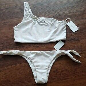 NWT Mikoh Pink White Chic Feminine Floral Tropical Bikini Swim Set Size XL/L