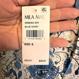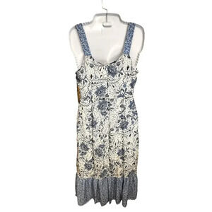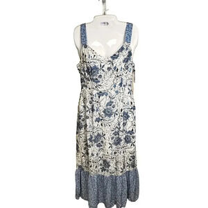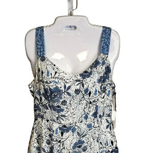 NWT Mila Mae Blue White Dual Floral Print Flowy Ruffle Hem Sweetheart Neck SZ S