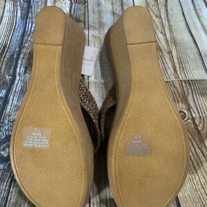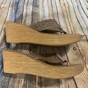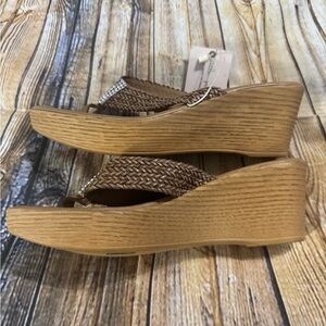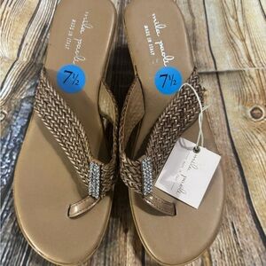 NWT Mila Paoli Beige Wedge Sandals with Sparkly Straps Womens Size 7.5