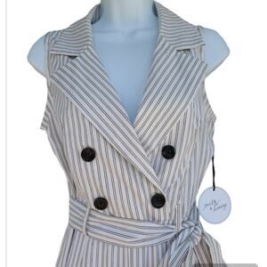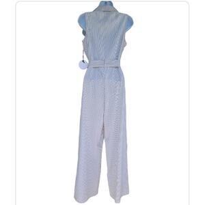 NWT Milk & Honey Pinstripe Jumpsuit Size S Black White Wide Leg V-Neck Classic