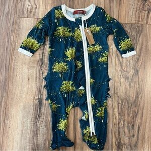NWT Milkbarn Infant Firefly Bamboo Ruffle Zipper Footed Romper