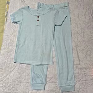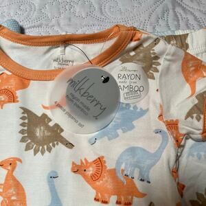 New with tags Milkberry two piece pajamas bundle in super soft bamboo. Includes dinosaur print and blue thermal Henley style. Size 3T.