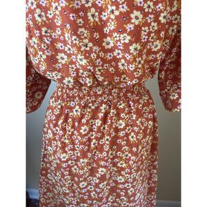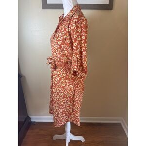 NWT Millenium Womens Mini Floral Midi Shirt Dress M Brown Retro 70s Work Casual