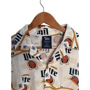 NWT Miller Lite Beer Hawaiian Shirt Men’s L Button Up Short Sleeve Lager Logo