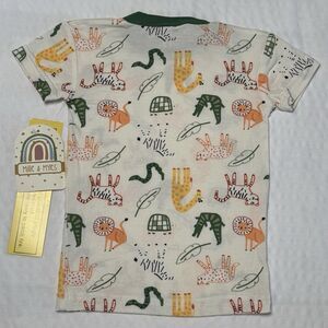 The NWT Millie & Myles Baby Toddler Zoo Animals Soft Bamboo 2pc Pajamas Set in size 2T is a colorful and fun sleepwear option for little ones. Made from lightweight bamboo viscose material, this pajama set features a graphic print of zoo animals, perfect for a nature-themed bedtime routine. The pullover closure and short sleeves make it easy to dress and comfortable for all seasons, making it a versatile choice for any toddler's wardrobe. With a brand known for quality and a rainbow character family, this 2-piece pajama set is a delightful addition to any baby and toddler clothing collection.