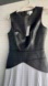 Black leather top with a fitted design. Pleated white skirt. Perfect for chic occasions.