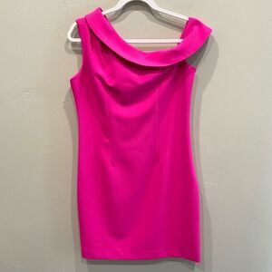 Milly Cressida One-Shoulder Dress in Raspberry Pink This beautiful Milly dress is new with tags No visible flaws Size: 6 Color: Raspberry Fuchsia Pink *Color may vary in some photos due to lighting* Fits true to size Designed for a contemporary fit Asymmetric fold-over neckline, shirred right shoulder Sleeveless at right, off-the-shoulder cap sleeve at left Shaping darts, sheath silhouette, mini length Concealed side zip with hook-and-eye closure, lined Made in USA, imported fabric from Italy. *Stock photos are only a visual as to how to dress looks. Color of dress does not match those photos* Purchased from Bloomingdales. Measurements (laid flat across): Pit to Pit: 17" Top of Left Shoulder to Hem: 35"