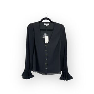 NWT Milly Greer Black Chiffon Long Sleeve Button Front Top Size M