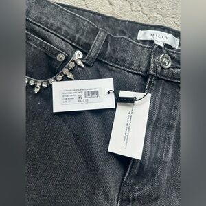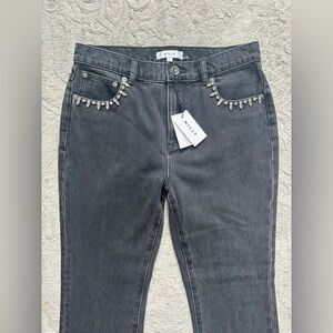 NWT Milly Hali Crystal Embellished Cropped Straight Jeans Size 27 Dark Wash