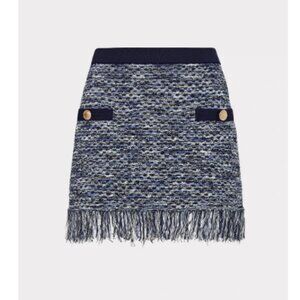 NWT Milly Kaia Textured Knit Cardigan Jacket & Skirt Set, Navy Multi | Small