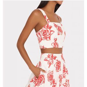 Crafted from a lightweight 100% cotton, this square neck tank is embroidered with a red Juliet Rose print. For the full look, pair it with its coordinating Juliet Rose Midi Skirt.