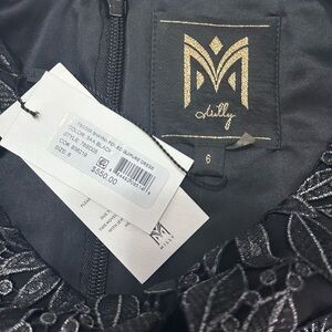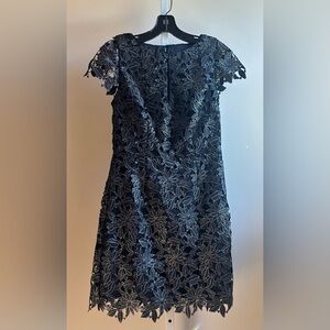 NWT Milly Shayna Foiled Guipure Dress 6 Black Silver Lace
