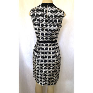 NWT Milly Silk Dress Sheath Sleeveless Black Gray Round Neck Keyhole Lin…