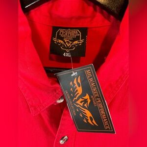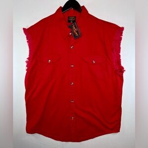 NWT Milwaukee Leather men’s sleeveless button down red shirt sz 4XL frayed Biker