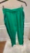 Stylish green track pants featuring unique fringe detailing along the sides. Perfect for a trendy and comfortable look.