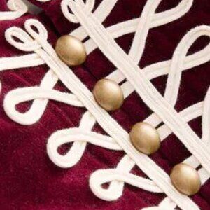 This jacket is your new uniform. Cut from velvet, it's shaped to a classic military-inspired cut with a platoon of gold buttons and frogging on the front. Oh, and did we mention it comes in adult sizes for a matching moment?