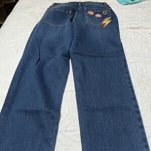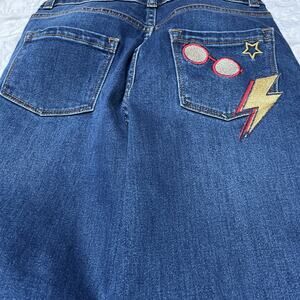 New with tags Mini Boden + Harry Potter denim jeans. Adjustable waist with star, lightning bolt and glasses front and back embroidery. Size 12.