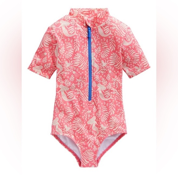 NWT Mini Boden Kids Pink mermaid one piece Rashguard zipper swimsuit 11/12