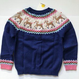 NWT Mini Boden Navy Reindeer Fair Isle Christmas Cardigan