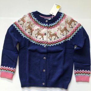 NWT Mini Boden Fair Isle Christmas Cardigan-Navy Reindeer.