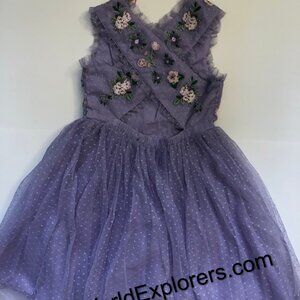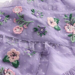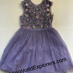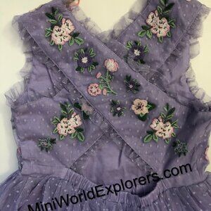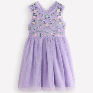 NWT Mini Boden Tulle Cross-Back Dress-Lilac Floral Embroidery.