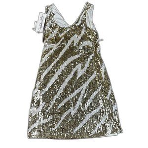 NWT Mini Dress Size 8 | Prelude White and Gold pearl & Sequin Tank Dress.