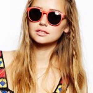 Brand new Mink Pink sunglasses. Neon orangey red frame with tortoise shell arms. Very cool but the frames are too small for my face