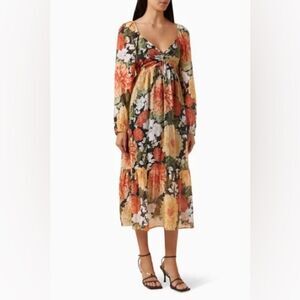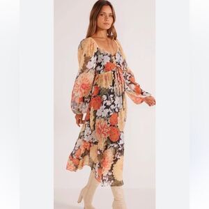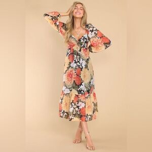 NWT MinkPink Clementine Midi Red Cream Dress Blouse Floral Vintage Size S