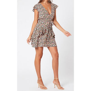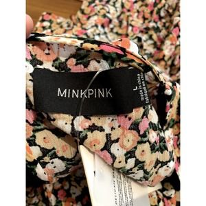 NWT MinkPink GOOD GIRL MINI-DRESS floral Black background Size L