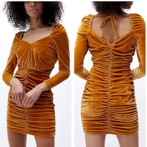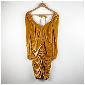 NWT MinkPink Meknes Gold Velvet Ruched Mini Dress Size Medium