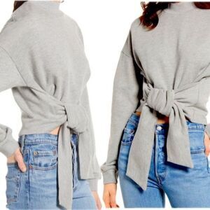 NWT MinkPink Women's Tie Front Mock Neck Pullover Sweatshirt Gray Marled Size XS