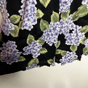 This is an all over black and purple floral print romper from Minkpink. It has a low v neck line, long sleeves, and a zipper closure on the back. It is made from a lightweight and soft material. One side of the brand tag has detached, but otherwise it is in excellent condition. Approx measurements: Pit to pit: 19” Flat waist: 16.5” Shoulder to hem: 29.5”