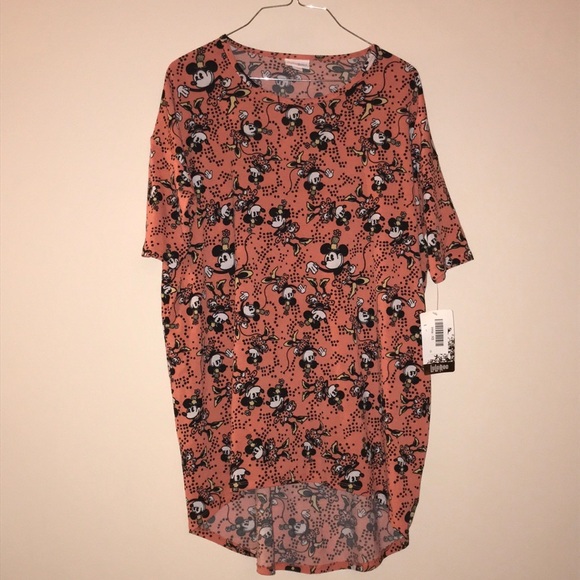 NWT Minnie Mouse LuLaRoe Top, size XS, Irma, peach background with Minnie Mouse, new with tags, comes from a smoke/pet free home.