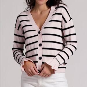 NWT Minnie Rose Button Up Striped Cotton Cardigan Sweater Ruffle Wrist Size S