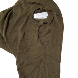 NWT Minnie Rose Women's Sweater Cold Shoulder Cutout Military Green Size Medium