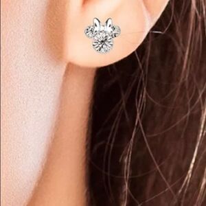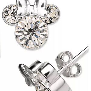 NWT Minnie Mouse Clear Crystal Stud in Sterling Silver with Bonus Trinket Box
